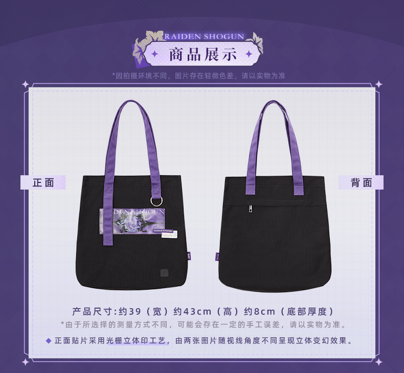 A cotton canvas tote bag from the apparel collection inspired by Raiden Shogun's "Plane of Euthymia"